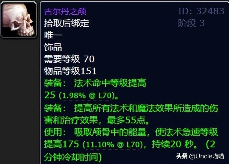 魔兽世界国际服燃烧的远征(古尔丹之颅)属性:常驻法术命中 17法术伤害 +55使用后法