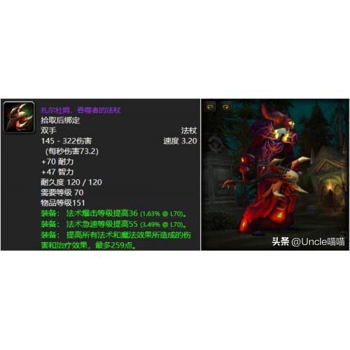 魔兽世界国际服燃烧的远征(扎尔杜姆吞噬者的法杖)属性:75 耐力62 智力法术伤害