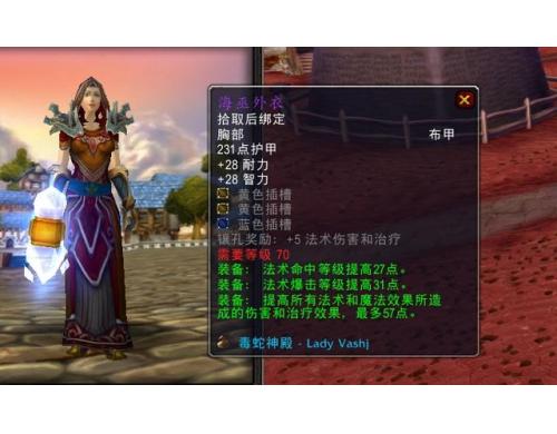 魔兽世界国际服燃烧的远征(阳炎之袍)属性:42 智力38 耐力法术伤害 70暴击 32