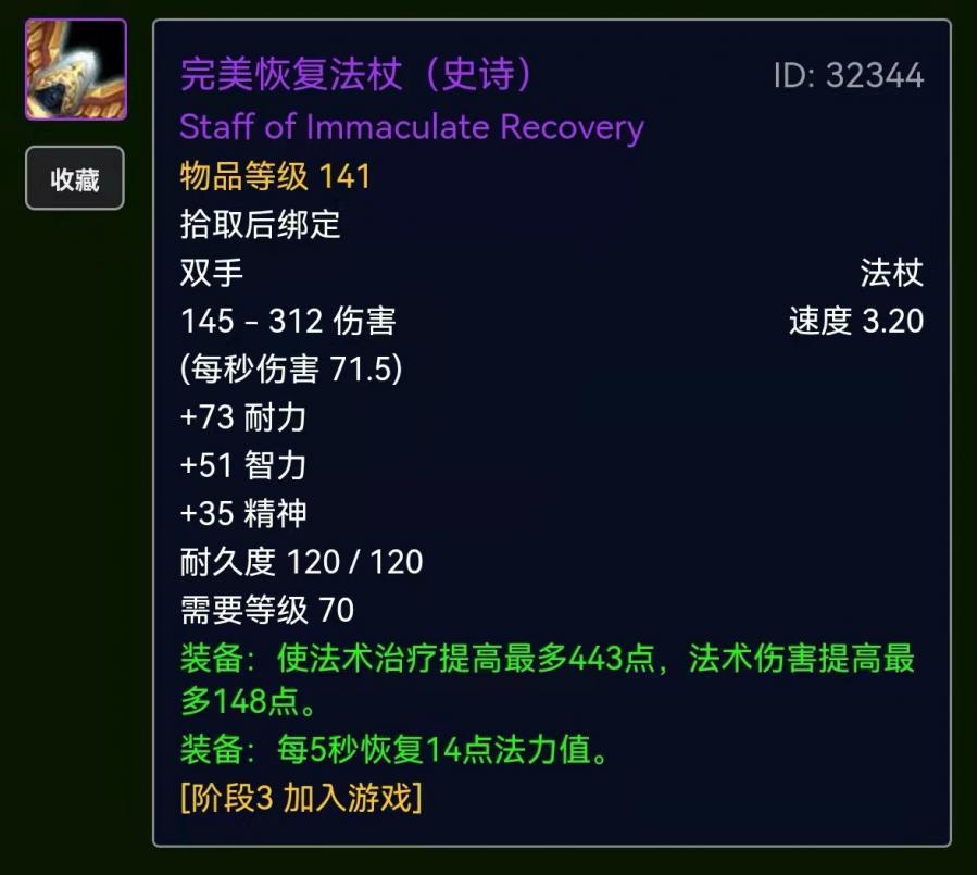 魔兽世界国际服燃烧的远征(疗毕业级法杖)属性:60 智力48 精神治疗效果 130还有法术暴
