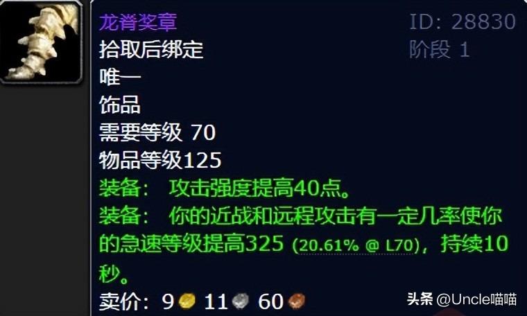 魔兽世界国际服燃烧的远征(龙脊奖章)属性:30 敏捷装备有几率提高急速等级325